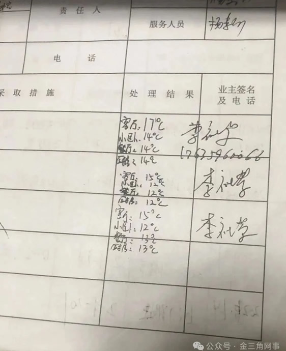 “他们派人都上门测量过三次,只有一次客厅温度是17℃,其他时候都只有15℃左右,卧室和其他房间温度更低。”